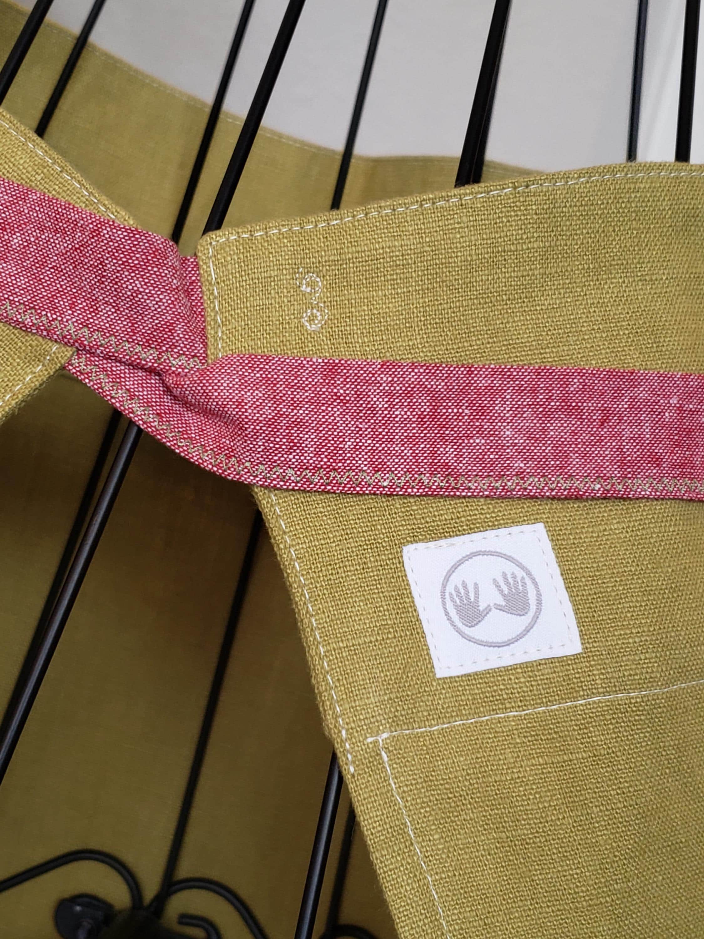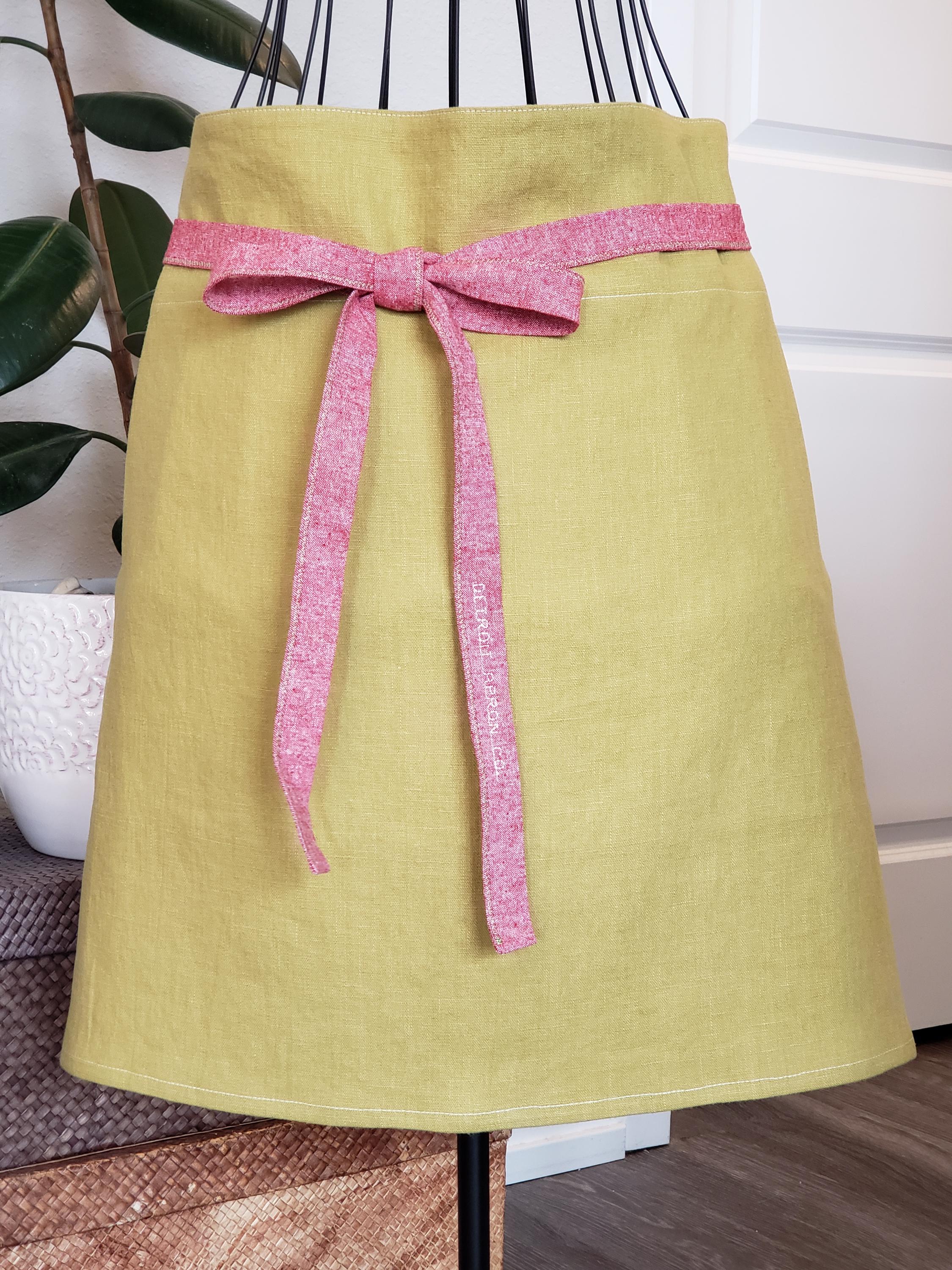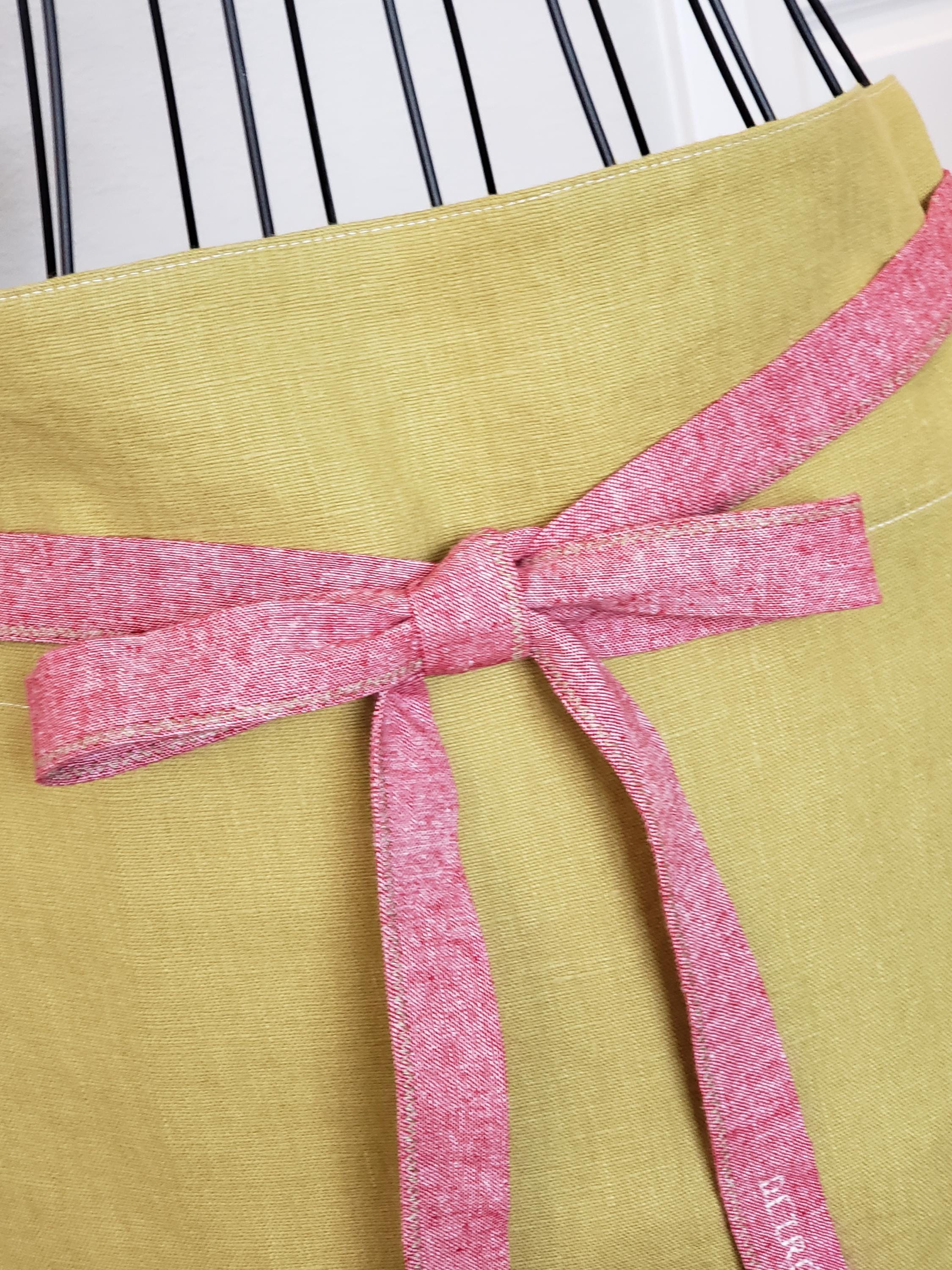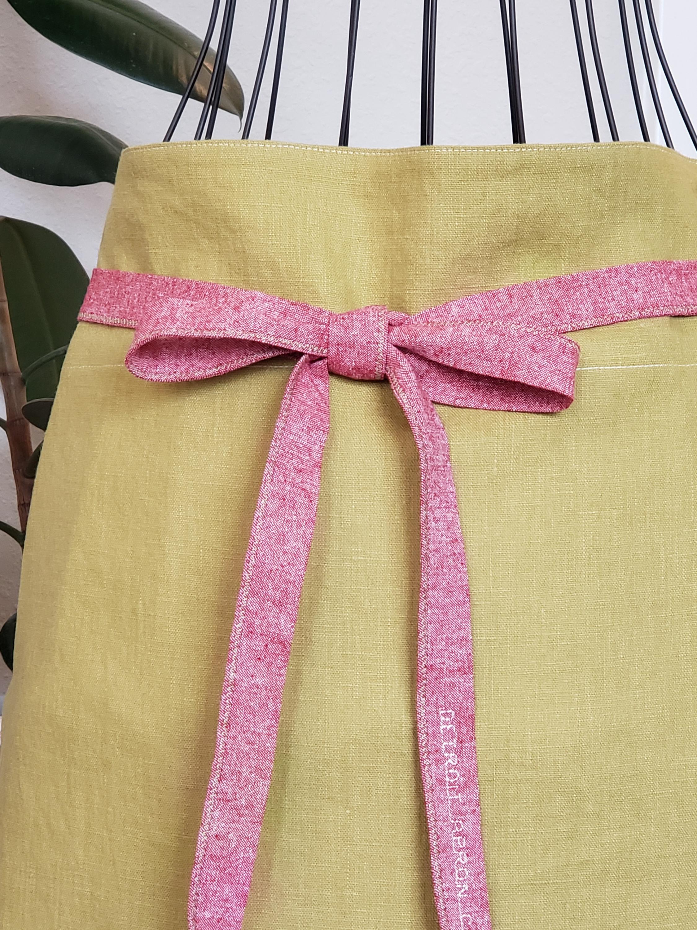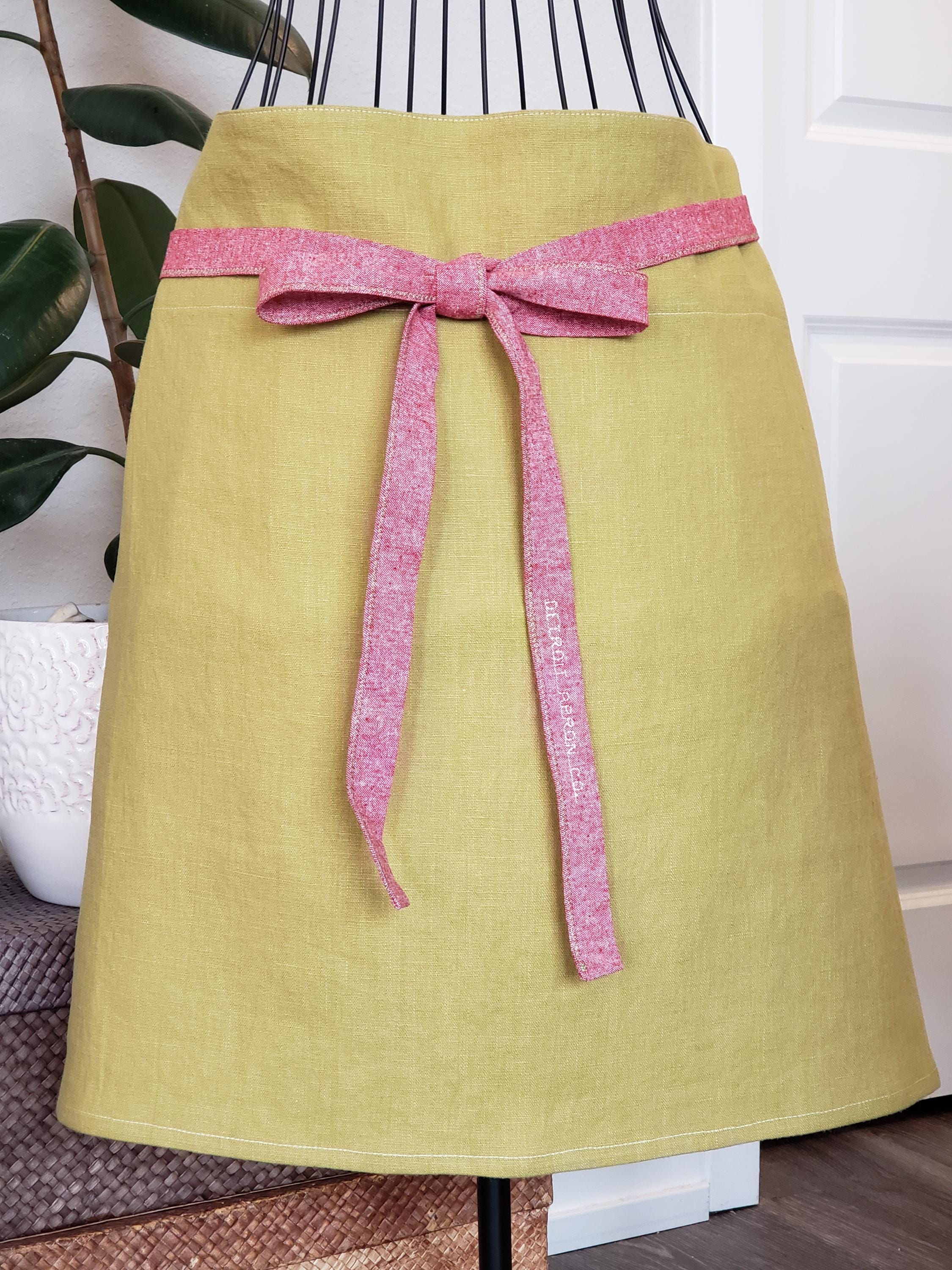 Do you prefer a bistro or half apron instead of a full apron draped around your neck? This apron will be your new best friend. Lightweight and soft, it will feel luxurious to wear and touch because of the 100% linen fabric. With repeated washings, it will get even softer but remain durable. A great apron for home, restaurant or studio. The waist ties wrap around to the front for ease of tying.